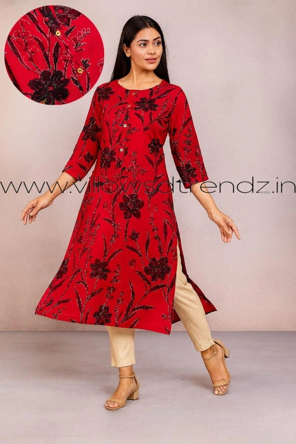 Rayon Kurta| Side cut| 3/4 Sleeve| Red | LI193009