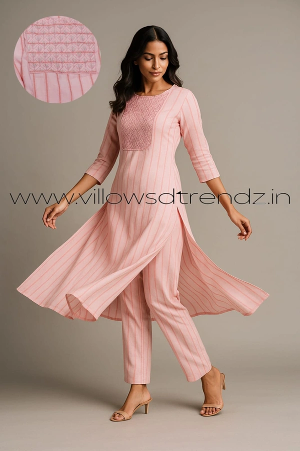 Avaasa Kurtis| Side Cut| 3/4th Sleeve| Pink | AV240051