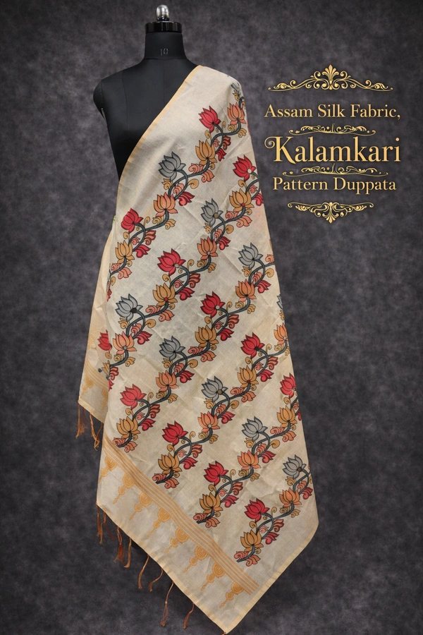 Assam Silk Duppata|Kalamkari Pattern Prints| 2.25 mts Length| Half sandal | AS1950012
