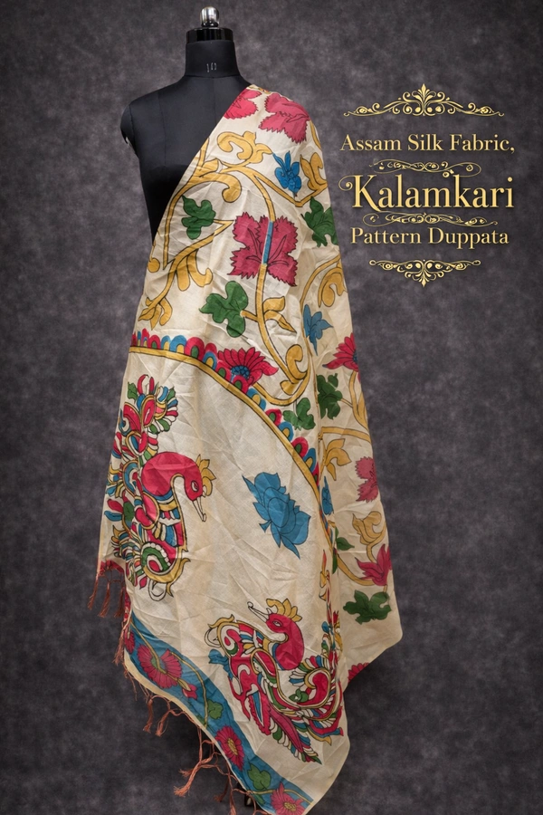 Assam Silk Duppata|Kalamkari Pattern Prints| 2.25 mts Length| Half sandal | AS195009