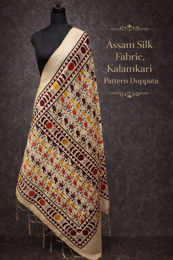 Assam Silk Duppata|Kalamkari Pattern Prints| 2.25 mts Length| Half sandle | AS195001