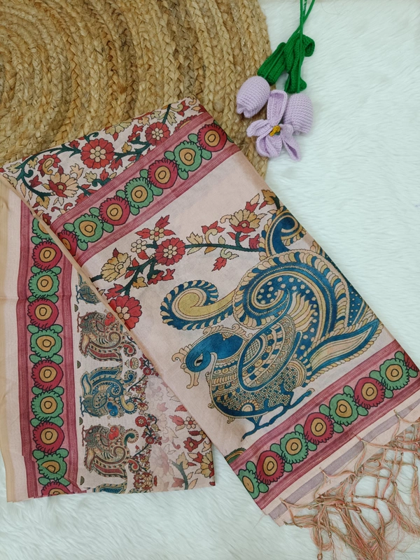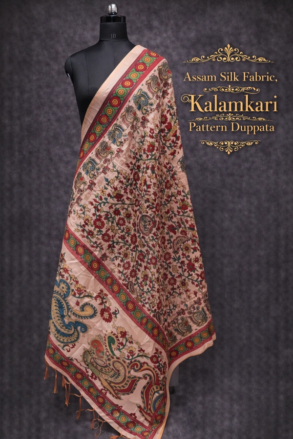 Assam Silk Duppata|Kalamkari Pattern Prints| 2.25 mts Length| Multi color | AS1950010