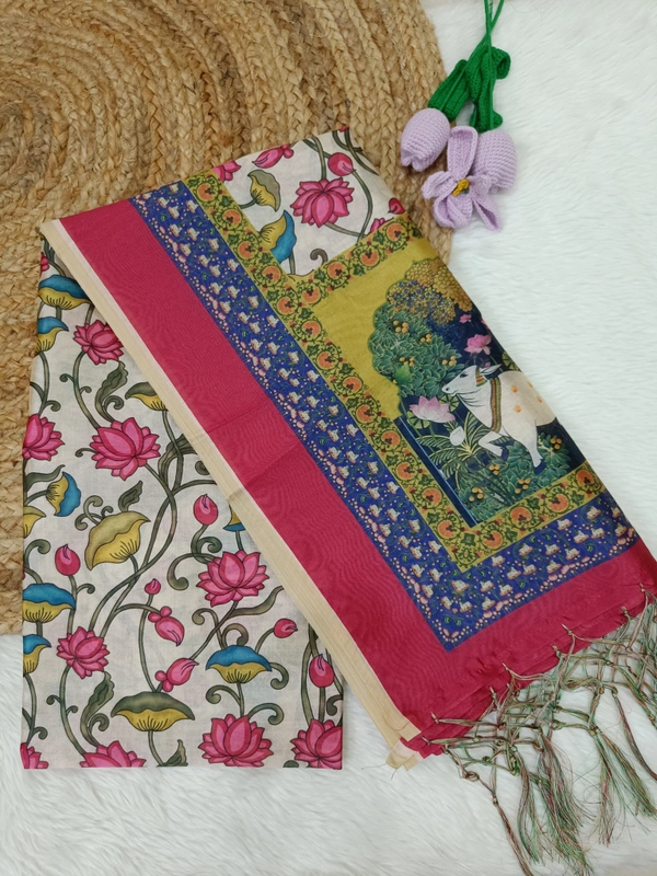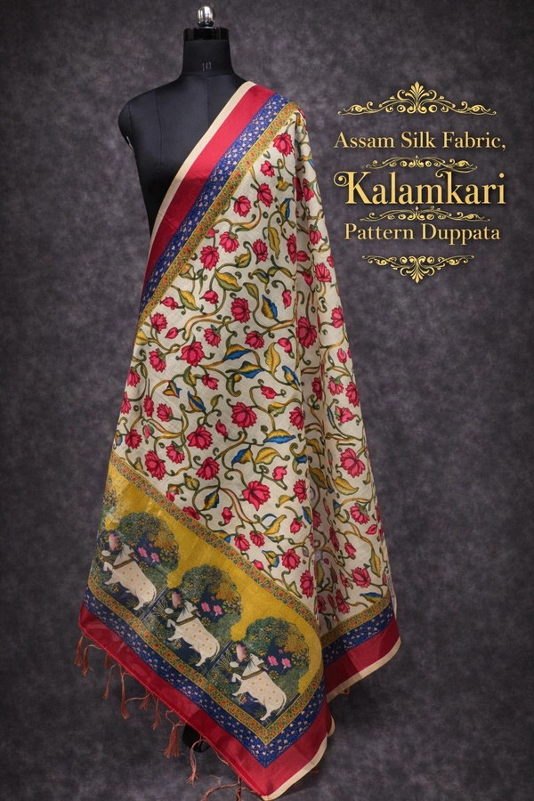 Assam Silk Duppata|Kalamkari Pattern Prints| 2.25 mts Length| Multi color | AS1950014