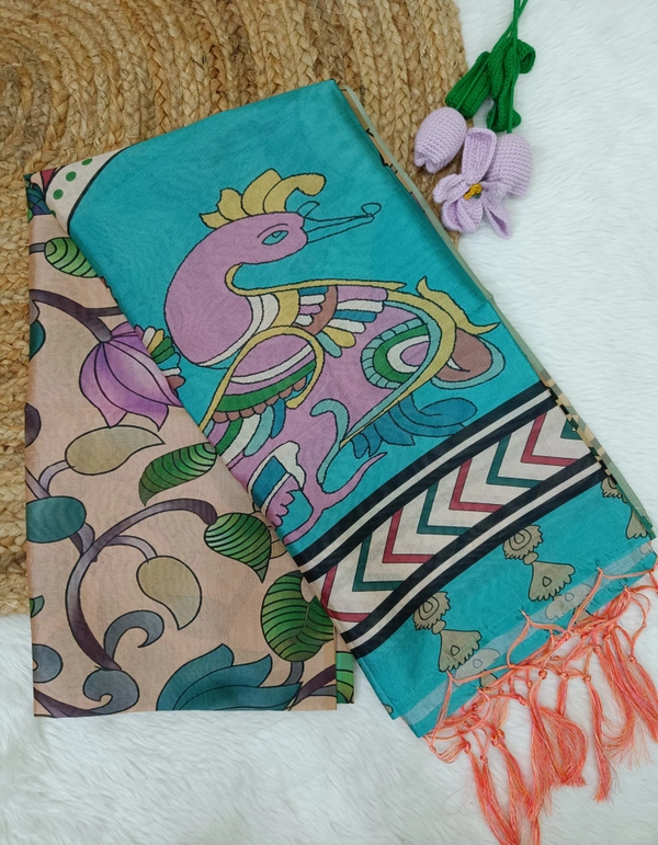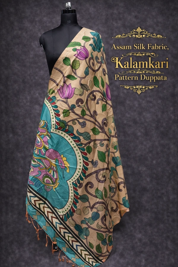 Assam Silk Duppata|Kalamkari Pattern Prints| 2.25 mts Length| Sky blue | AS195008