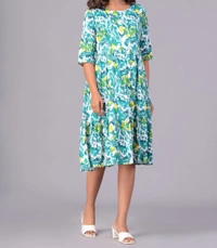 Cotton 3 tier Frock| 3/4th Sleeve| with back adjustable knot| Green | CF2003