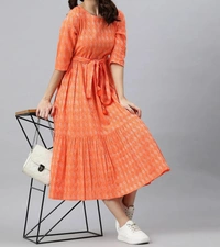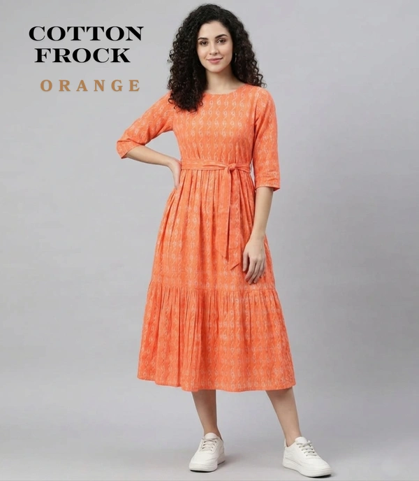 Cotton 3 tier Frock| 3/4th Sleeve| with back adjustable knot| Orange | CF2002