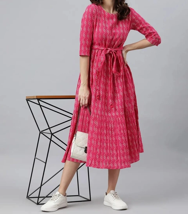 Cotton 3 tier Frock| 3/4th Sleeve| with back adjustable knot| Rani Pink | CF2001