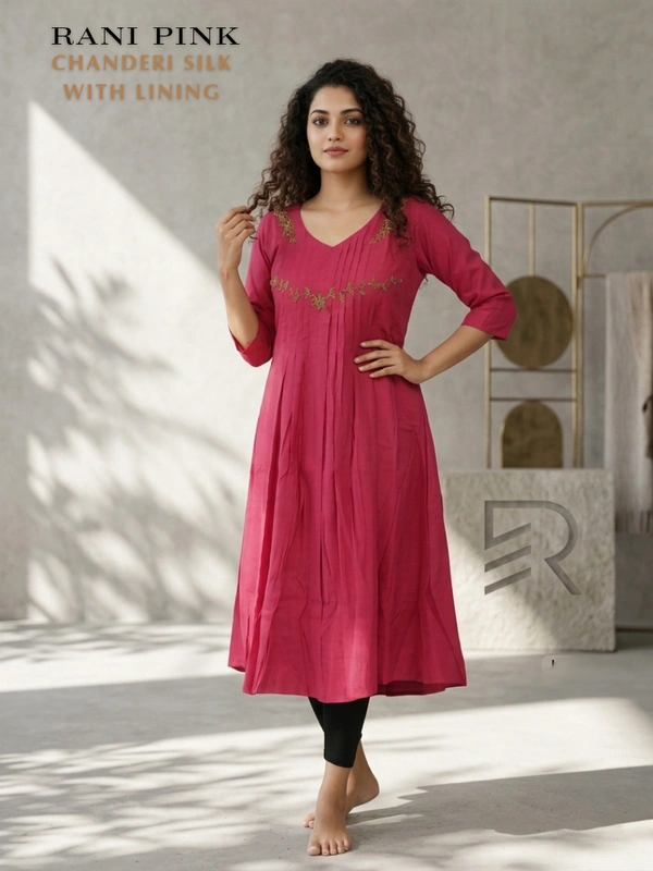 Designer Frock | 3/4th Sleeve| Chanderi Silk Yoke Work|with Lining| Rani Pink | FW51501