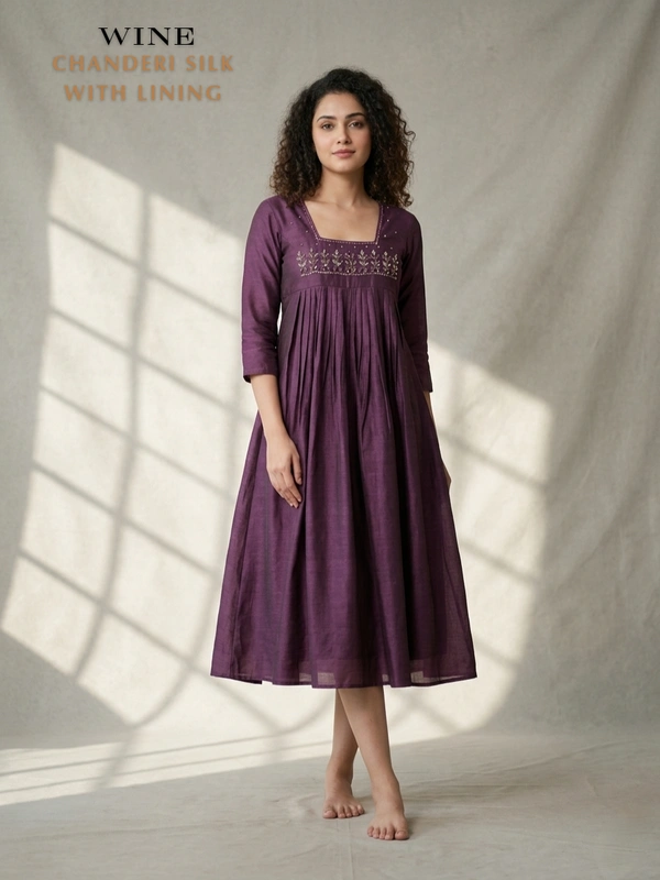 Designer Frock | 3/4th Sleeve| Chanderi Silk Yoke Work|with Lining| Wine | FW550013