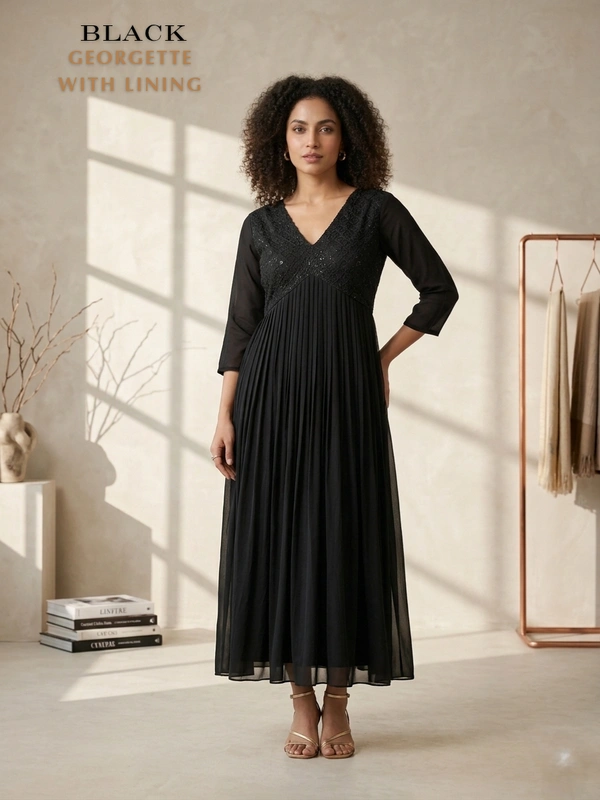 Designer Frock | 3/4th Sleeve| Georgette |with Lining| Black | FW55006