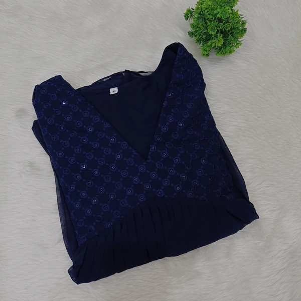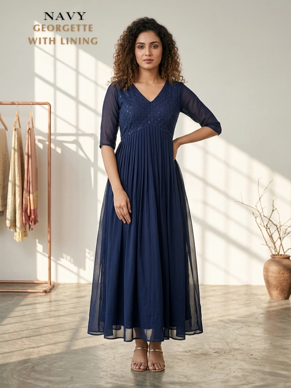 Designer Frock | 3/4th Sleeve| Georgette |with Lining| Navy | FW550015
