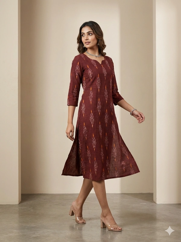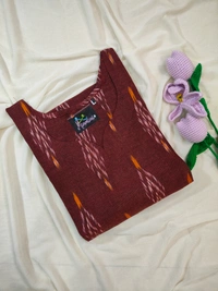 Kalamkari Side Cut Kurti � Product Description Add a touch of tradition with a modern twist to your wardrobe with this elegant Kalamkari Side Cut Kurti. Crafted from soft, breathable cotton fabric, this kurti features beautiful authentic Kalamkari prints that reflect timeless Indian artistry. The stylish side cut design adds a contemporary edge, allowing ease of movement and a flattering silhouette. Perfect for everyday wear, office use, or festive gatherings, this kurti pairs effortlessly with leggings, palazzos, or jeans. Designed for comfort and style, it keeps you relaxed all day while making a graceful fashion statement. ? Key Features: � Authentic Kalamkari print � Soft & breathable cotton fabric � Trendy side cut design � Comfortable regular fit � Suitable for daily, office & festive wear ?? Fabric: Cotton ?? Style: Side Cut Kurti ?? Print: Kalamkari ?? Length: Knee / Calf length (as per design)