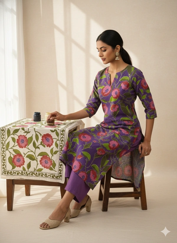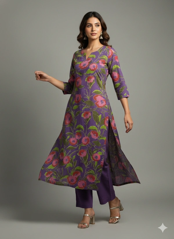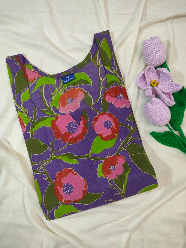 Kalamkari Side Cut Kurti � Product Description Add a touch of tradition with a modern twist to your wardrobe with this elegant Kalamkari Side Cut Kurti. Crafted from soft, breathable cotton fabric, this kurti features beautiful authentic Kalamkari prints that reflect timeless Indian artistry. The stylish side cut design adds a contemporary edge, allowing ease of movement and a flattering silhouette. Perfect for everyday wear, office use, or festive gatherings, this kurti pairs effortlessly with leggings, palazzos, or jeans. Designed for comfort and style, it keeps you relaxed all day while making a graceful fashion statement. ? Key Features: � Authentic Kalamkari print � Soft & breathable cotton fabric � Trendy side cut design � Comfortable regular fit � Suitable for daily, office & festive wear ?? Fabric: Cotton ?? Style: Side Cut Kurti ?? Print: Kalamkari ?? Length: Knee / Calf length (as per design)