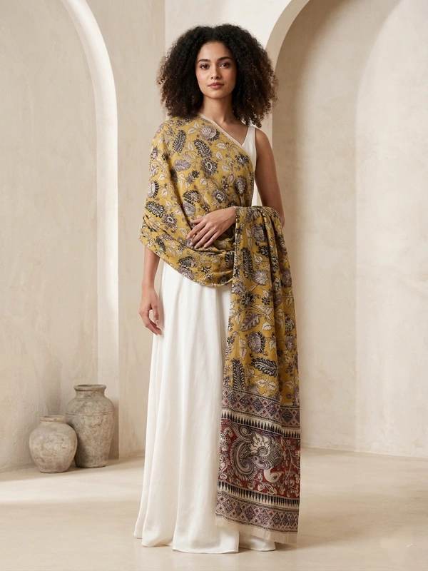 Add a touch of heritage and sophistication to your wardrobe with this exquisite Kalamkari Silk Dupatta. Inspired by traditional Indian art, this dupatta features intricate Kalamkari patterns that reflect timeless craftsmanship and cultural richness.