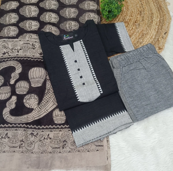 Mangalgiri Chettinad Kurti Set| With Lining| Combination of Kalamkari Duppata | Black | KCS95006|