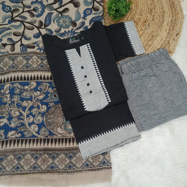 Mangalgiri Chettinad Kurti Set| With Lining| Combination of Kalamkari Duppata | Black | KCS95006|