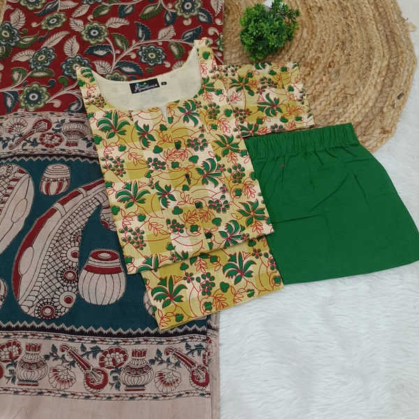Mangalgiri Chettinad Kurti Set| With Lining| Combination of Kalamkari Duppata | Cream | KCS95004|