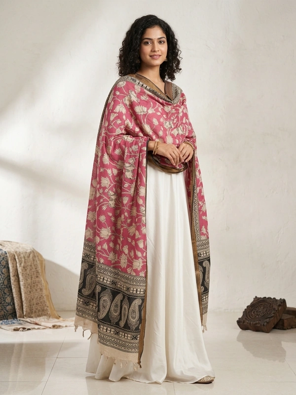 Add a touch of heritage and elegance to your wardrobe with this stunning Kalamkari dupatta. Shop now and stand out with timeless style