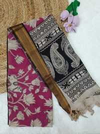Bring home a piece of timeless tradition with this exquisite Pen Kalamkari Zari Dupatta. Showcasing the beauty of hand-drawn Kalamkari art, this dupatta reflects rich heritage and intricate craftsmanship in every detail.