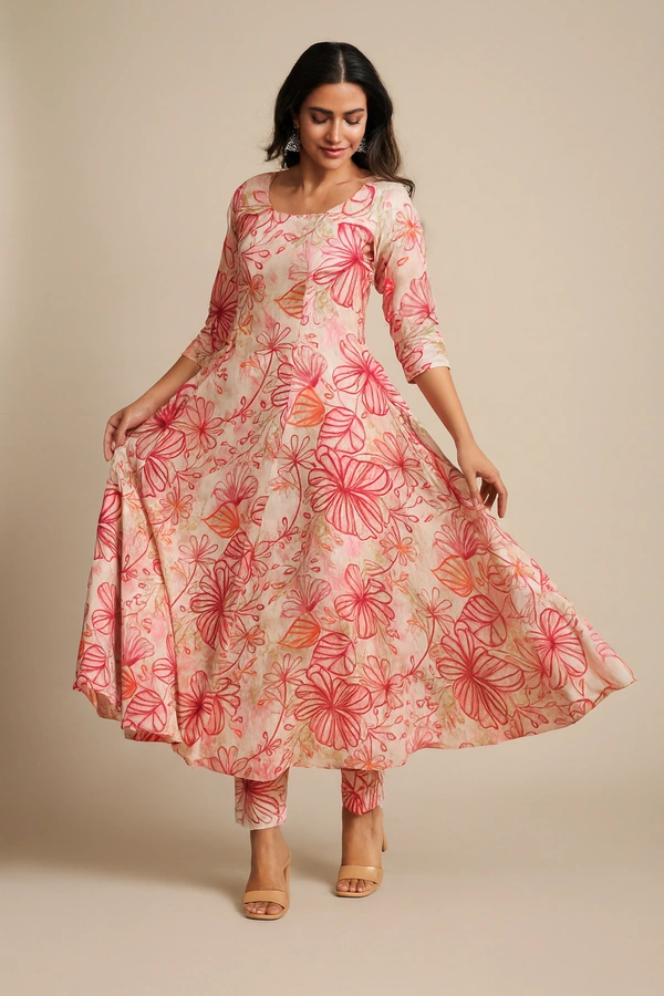 Vatican Silk Aline | Cord set | Aline Kurti with Pant| PEACH | VS63001|