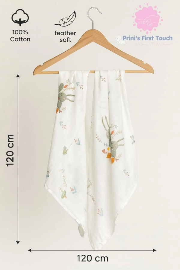 Imported Muslin Swaddel Towel|Bath Towel |Pack Contains 1 Towel|100% Organic Cotton| 120 x 120 cm| White | MIPT19006