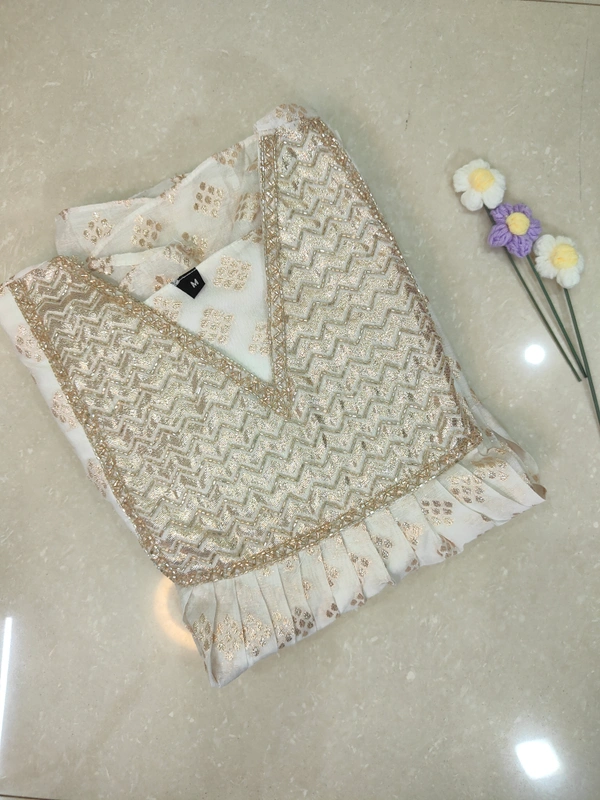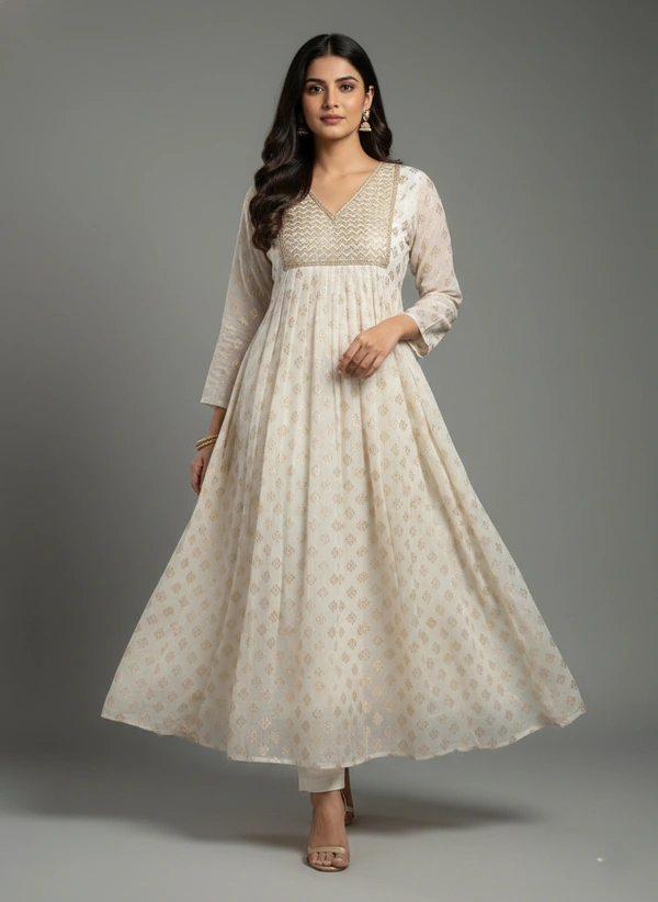 Designer Aline Kurti with Lining| 3/4th Sleeve| Silk Fabric with Full work| White | WGFE68001