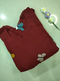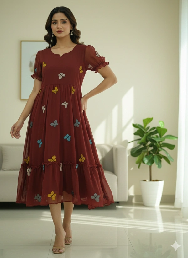 Designer Butterfly Kurti with Lining| Gown| 3/4th Sleeve| Georgette Fabric with Butterfly Embroidery| Maroon | BG43004