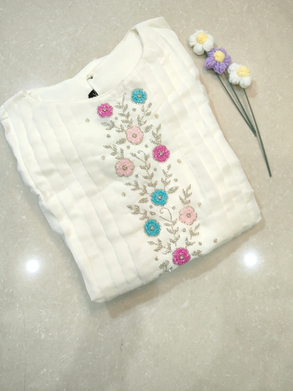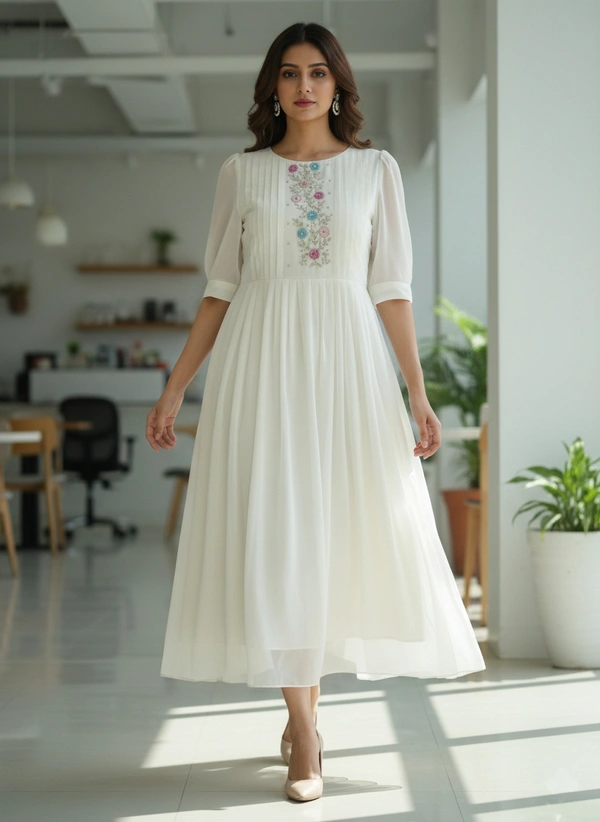 Designer White Gown with Lining| 3/4th Sleeve| Georgette Fabric with Neckwork| White | WGN63001