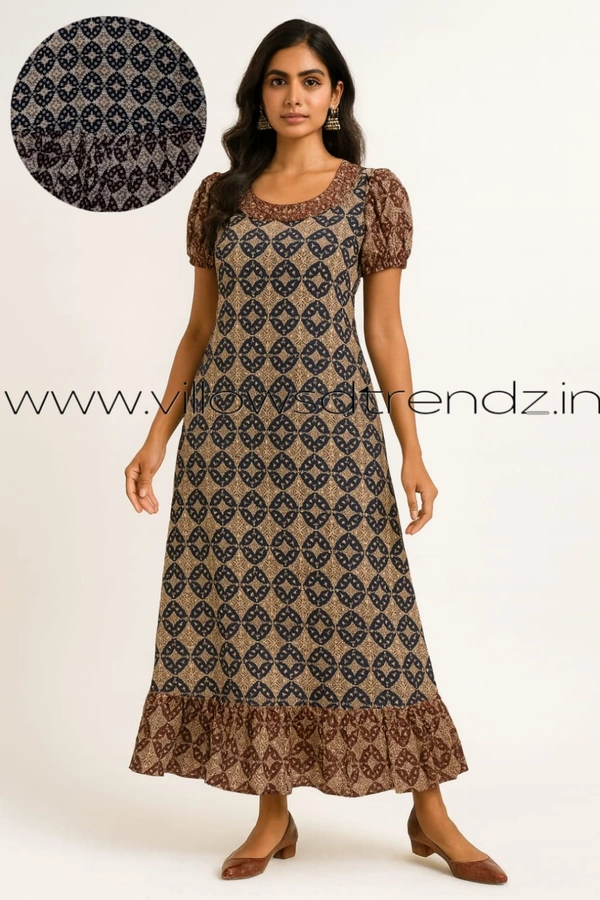 Maxi| Frock Nighty| Night Gown| Nighty| Designer Neck Pattern| Back side adjustable Knot| Half brown | FN25078