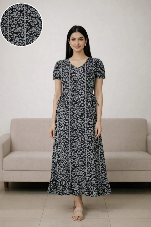 Maxi| Frock Nighty| Night Gown| Nighty| Designer Neck Pattern| Back side adjustable Knot| Ink Blue | FN700011