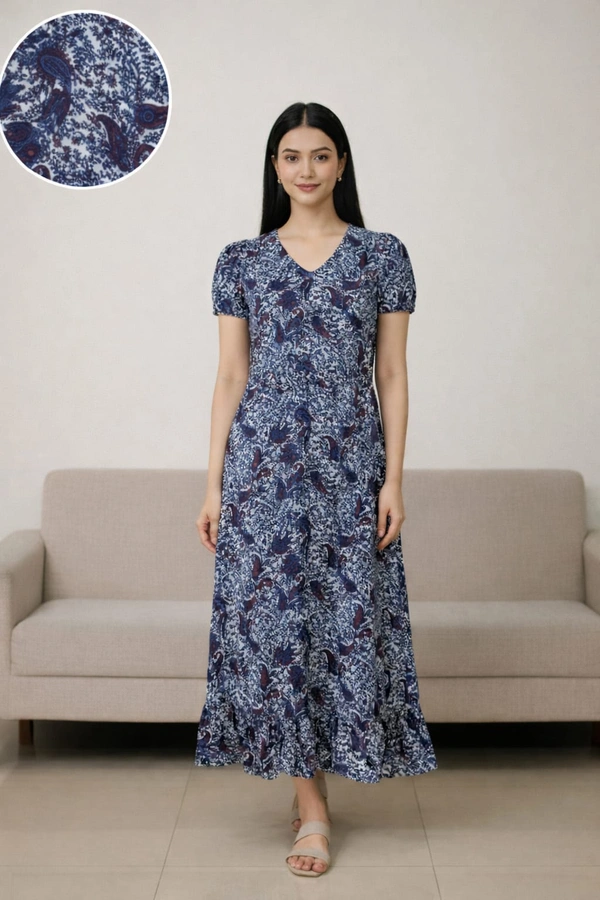 Maxi| Frock Nighty| Night Gown| Nighty| Designer Neck Pattern| Back side adjustable Knot| Ink Blue | FN70008