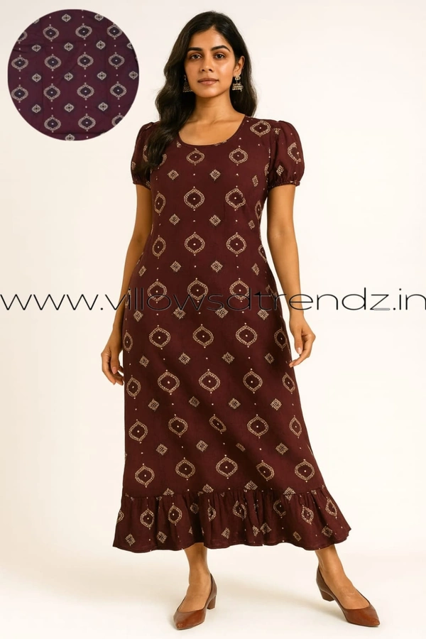 Maxi| Frock Nighty| Night Gown| Nighty| Designer Neck Pattern| Back side adjustable Knot| Maroon| FN25071