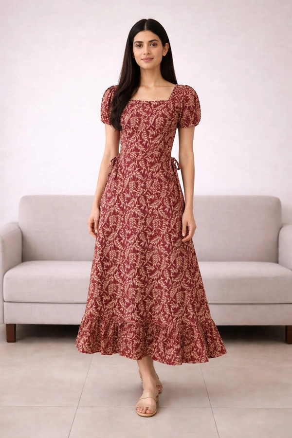 Maxi| Frock Nighty| Night Gown| Nighty| Designer Neck Pattern| Back side adjustable Knot| Maroon | FN700015