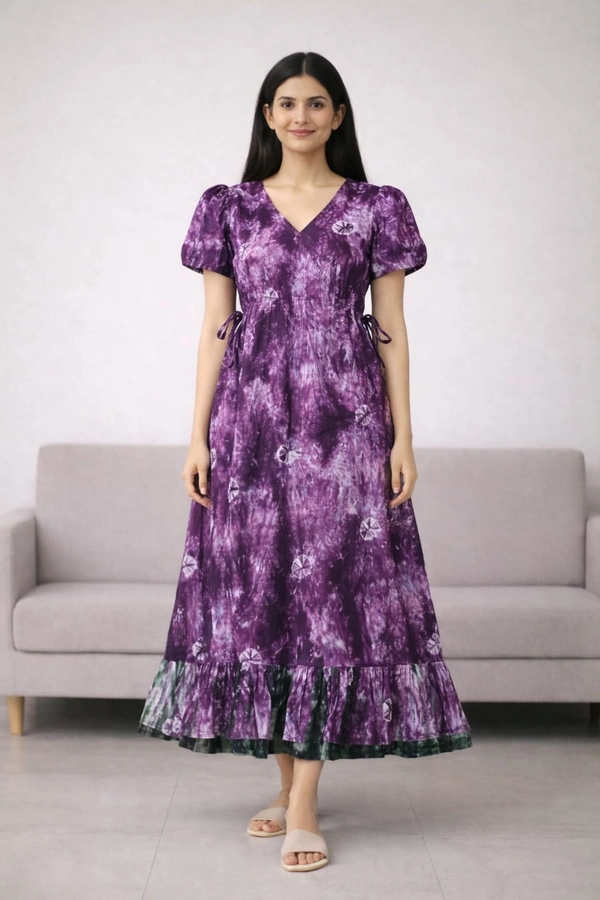 Maxi| Frock Nighty| Night Gown| Nighty| Designer Neck Pattern| Back side adjustable Knot| Purple | FN700030