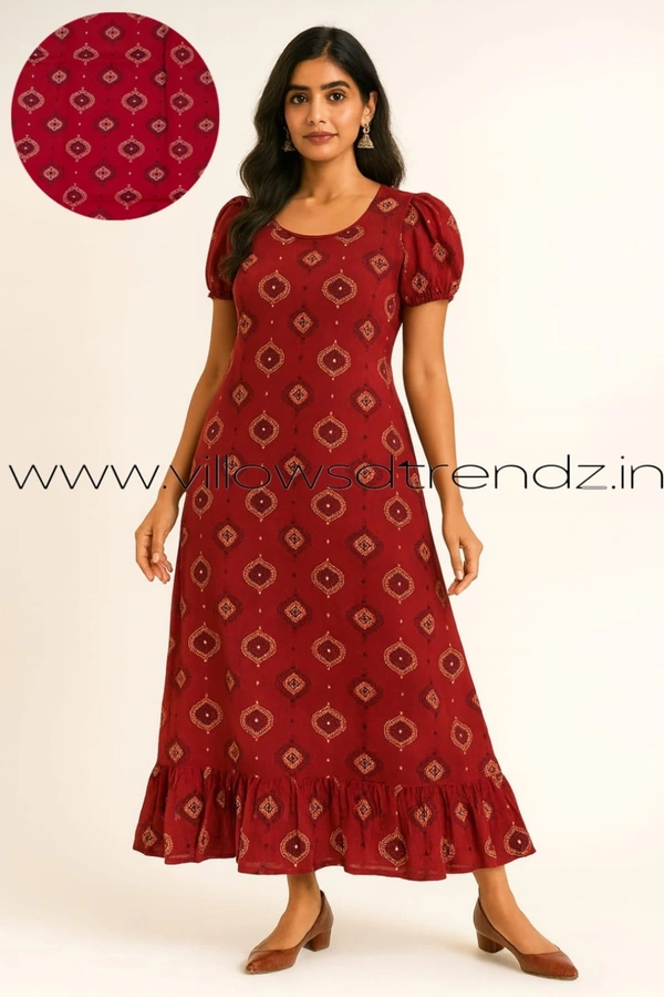 Maxi| Frock Nighty| Night Gown| Nighty| Designer Neck Pattern| Back side adjustable Knot| Red | FN25075