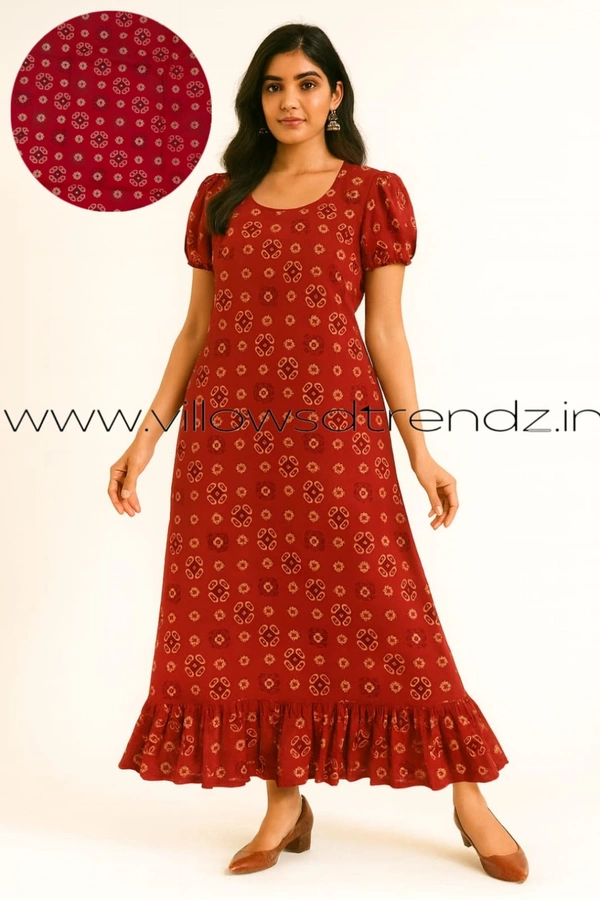 Maxi| Frock Nighty| Night Gown| Nighty| Designer Neck Pattern| Back side adjustable Knot| Red | FN25076