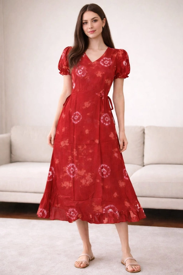 Maxi| Frock Nighty| Night Gown| Nighty| Designer Neck Pattern| Back side adjustable Knot| Red | FN700020