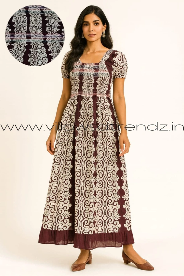 Maxi| Frock Nighty| Night Gown| Nighty| Designer Neck Pattern| Back side adjustable Knot|Maroon | FN25082