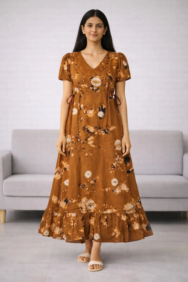 Maxi| Frock Nighty| Night Gown| Nighty| Designer Neck Pattern| Back side adjustable Knot|Mustard yellow | FN700027