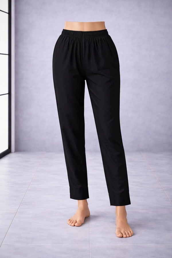 The elasticated waistband ensures a relaxed yet flattering fit, while functional pockets add everyday practicality. Perfect for office wear, casual outings, or evening styling.