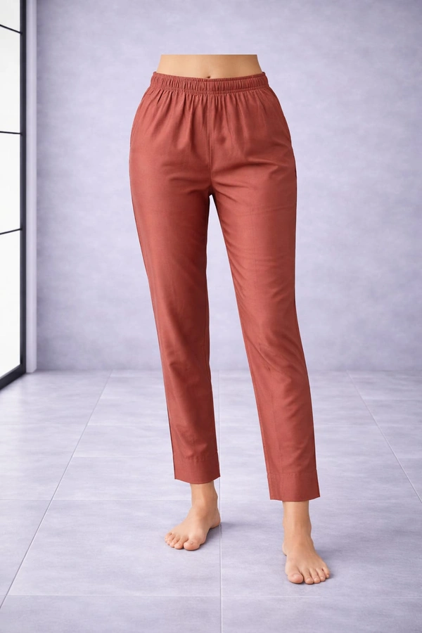 The elasticated waistband ensures a relaxed yet flattering fit, while functional pockets add everyday practicality. Perfect for office wear, casual outings, or evening styling.
