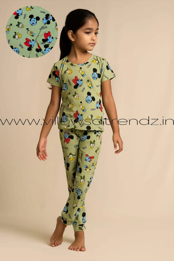 Kids Unisex Pyjama Set | T-shirt with Full Phant | 100% Cotton | Green | PYJ13502-249