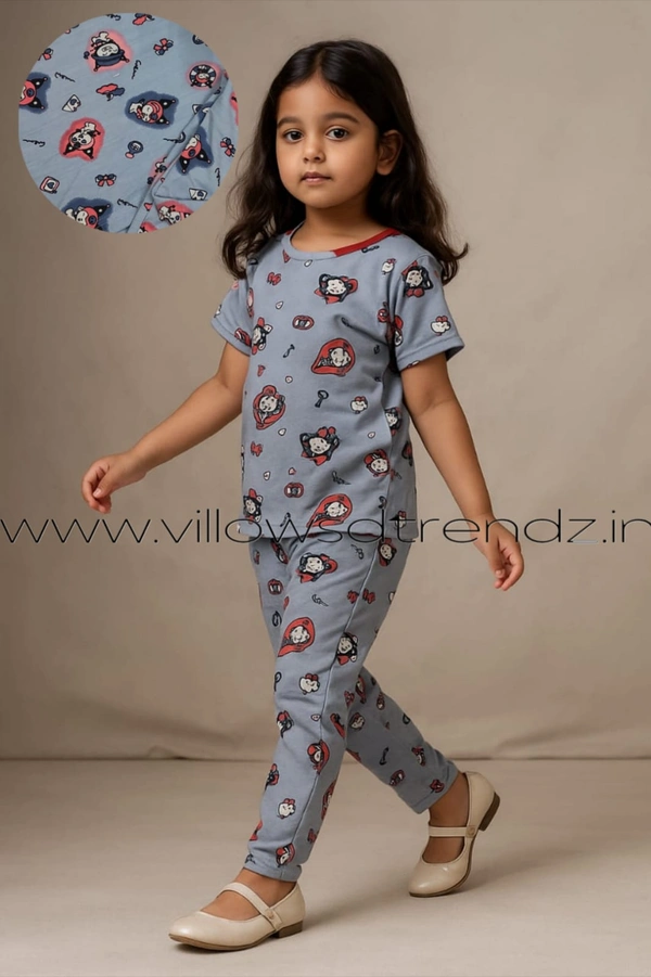 Kids Unisex Pyjama Set | T-shirt with Full Phant | 100% Cotton | Light Blue | PYJ13503-249