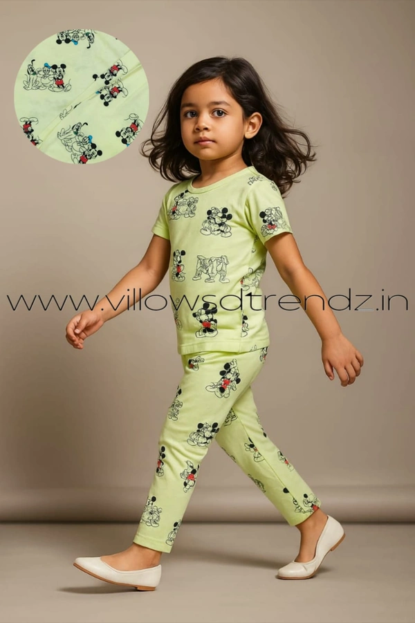 Kids Unisex Pyjama Set | T-shirt with Full Phant | 100% Cotton | Light Green | KPY105012