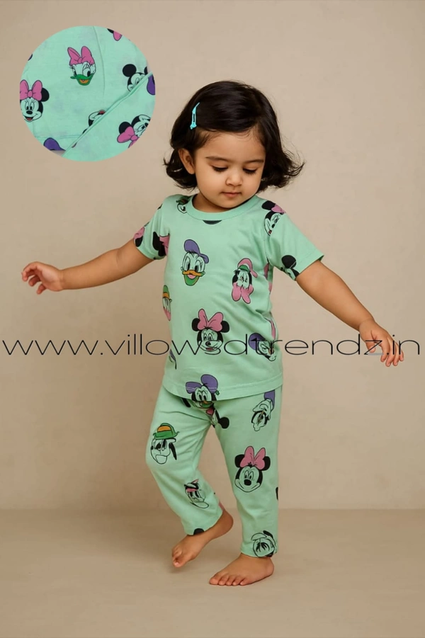 Kids Unisex Pyjama Set | T-shirt with Full Phant | 100% Cotton | Light Green | KPY105026