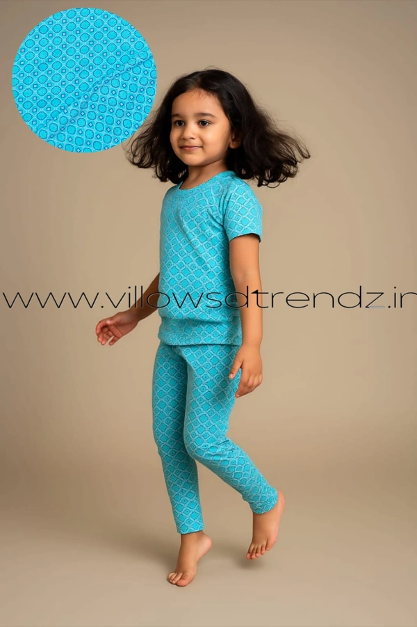 Kids Unisex Pyjama Set | T-shirt with Full Phant | 100% Cotton | Sky Blue | KPY10501