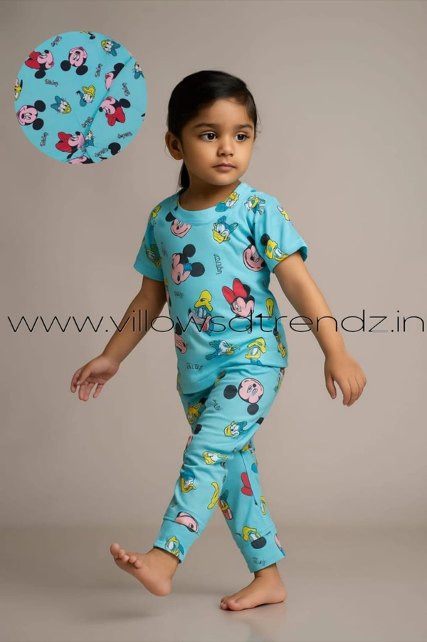 Kids Unisex Pyjama Set | T-shirt with Full Phant | 100% Cotton | Sky Blue| PYJ13507-249