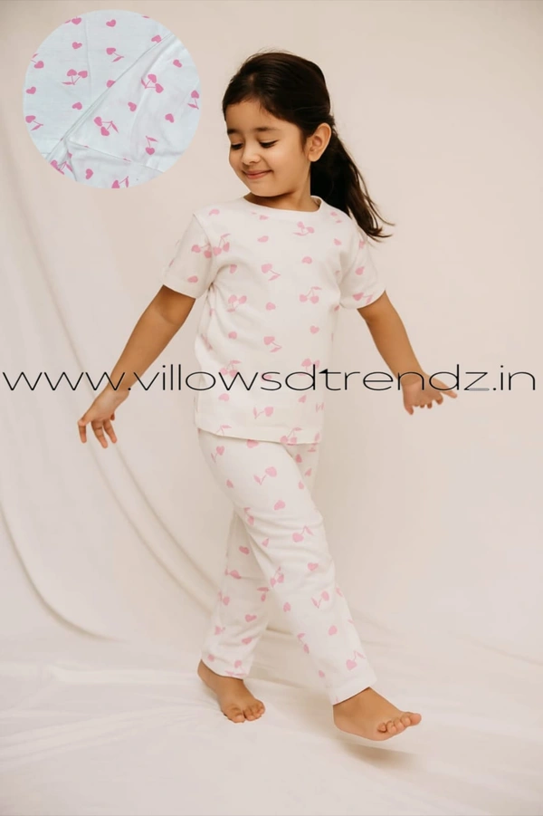 Kids Unisex Pyjama Set | T-shirt with Full Phant | 100% Cotton | White | KPY105024