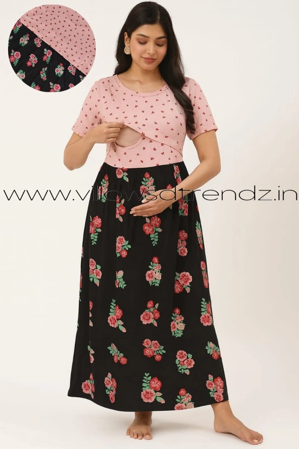 Maternity Feeding Lounge Wear | Pullup Gown| Zipless| Full Length| 52 inches height| Black | MGF310090