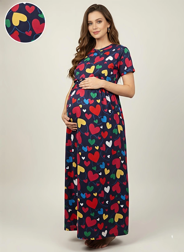 Maternity Feeding Lounge Wear | Pullup Gown| Zipless| Full Length| 52 inches height|| Multi colour | FM 26001